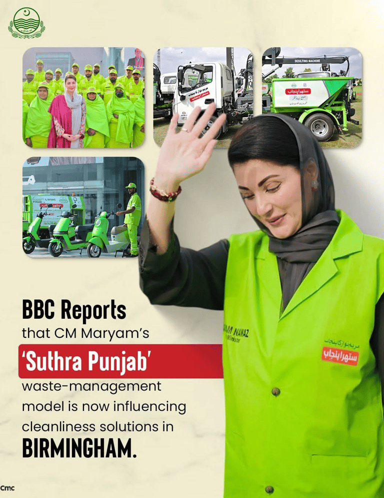 In recent years, the Government of Punjab, Pakistan, under the leadership of Chief Minister Maryam Nawaz Sharif, has embarked on a transformative journey towards sustainable cleanliness. The Suthra Punjab initiative, recognized for its innovative waste-management approaches, has gained attention beyond local borders. Notably, the BBC has reported on its influence, showcasing its effectiveness as a robust model for urban cleanliness, particularly in Birmingham.